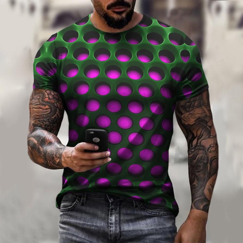 3D Graphic Printed Short Sleeve Shirts Optical Illusion Circles