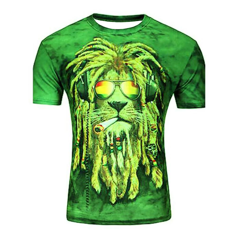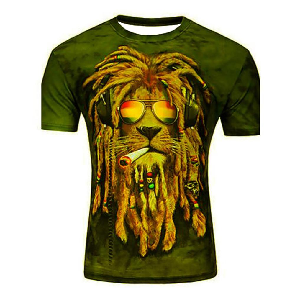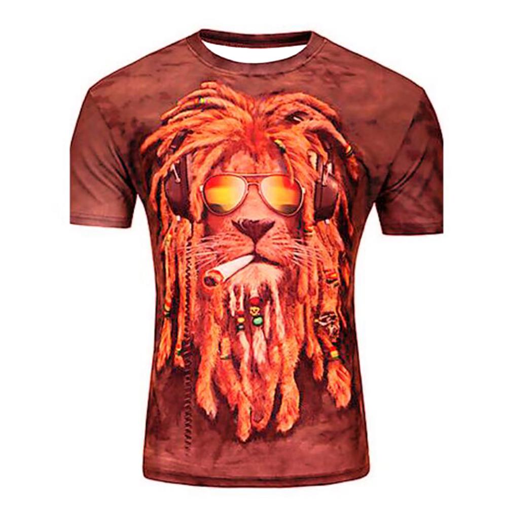 3D Graphic Printed Short Sleeve Shirts Smoke Lion