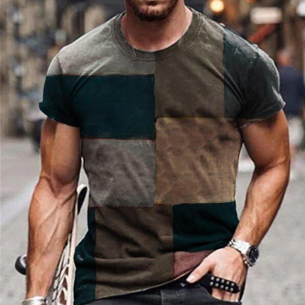 3D Graphic Printed Short Sleeve Shirts Square Design