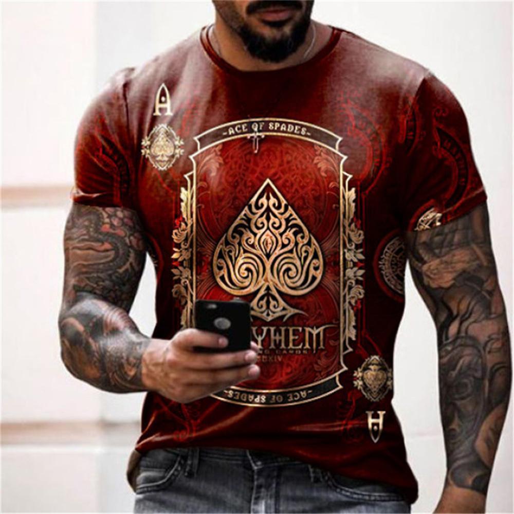3D Graphic Printed Short Sleeve Shirts Tall Round Neck Red / Summer