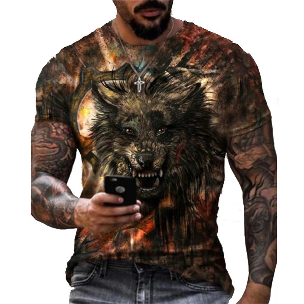 3D Graphic Printed Short Sleeve Shirts Wolf