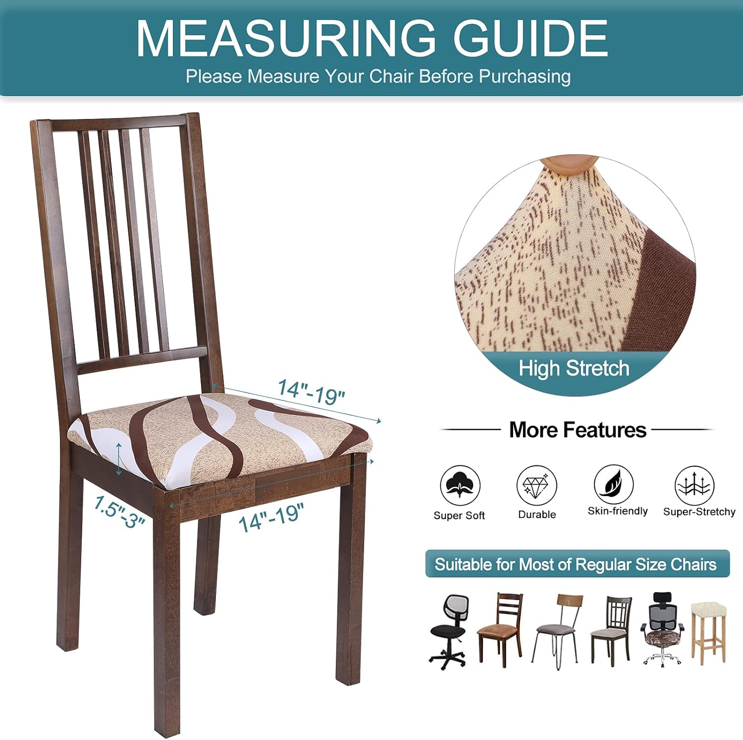 - Our dining chair covers are made of 85% polyester and 15% spandex fabric.