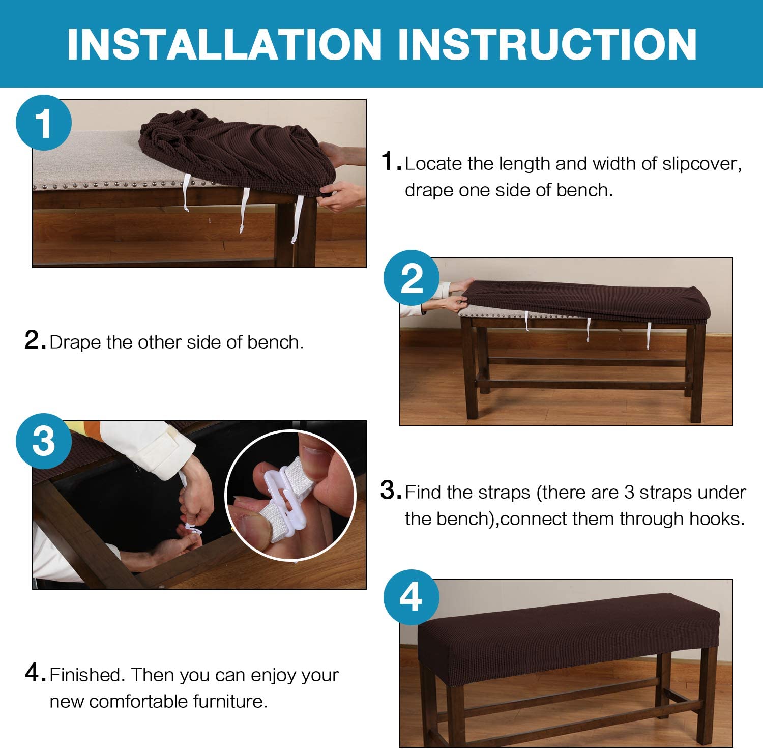 • Form Fit: This bench slipcover will perfectly stretch to a snug fit your bench. Large Size: fit for dining bench 51" to 59" long, 17" to 21" wide. Medium Size: fit for dining bench 42" to 54" long, 14" to 18" wide. Always measure your furniture before ordering!