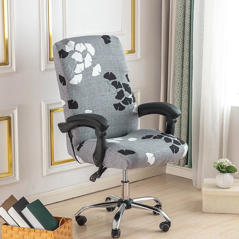 The print is very flattering. The design blended well with my office colors. It didn't really fit my chair well. My office chair is rounded at the top and at the bottom. It also doesn't separate in the middle like most office chairs. However, I wal able to get it to cover the chair. I couldn't use the zippers on the side so I just tucked them. No one knows. The fabric is soft and smooth. You'll really like it. Enjoy ..