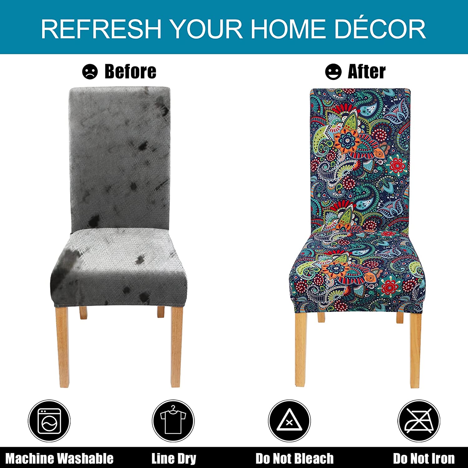 Switch up your dining room decor with these sleek and stylish chair slip covers, and transform your dining furniture for a whole new look! These protective and decorative slip covers protect chairs from accidental spillage, dirt, and food stains.