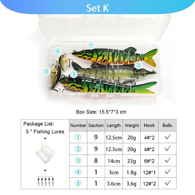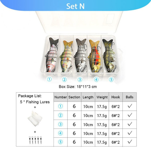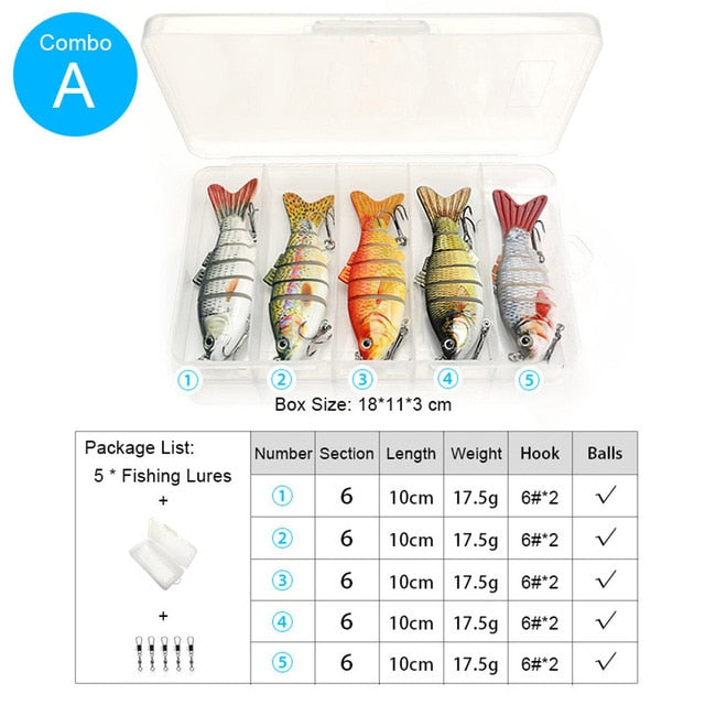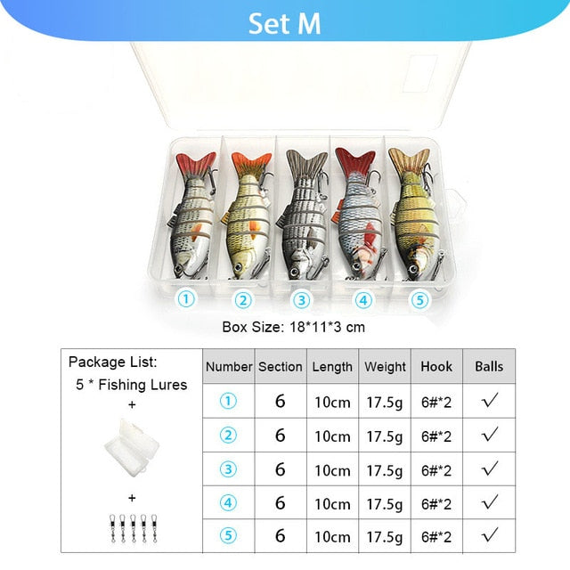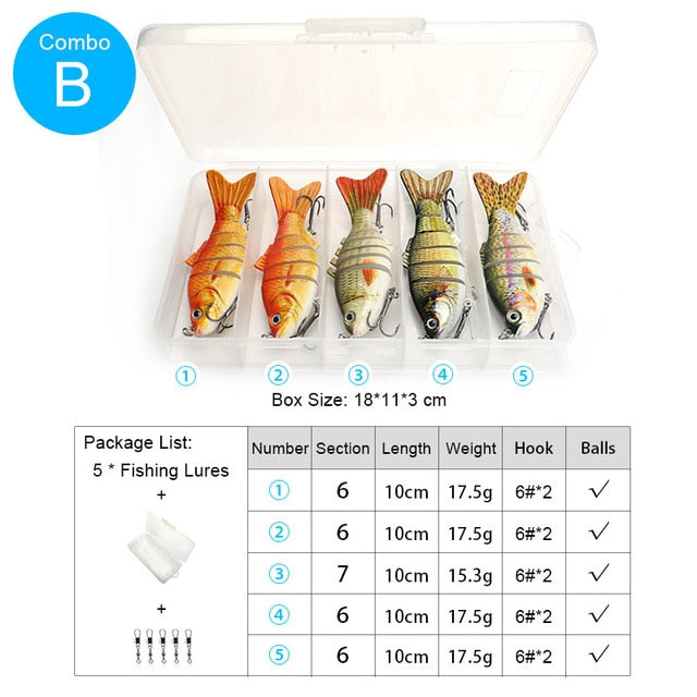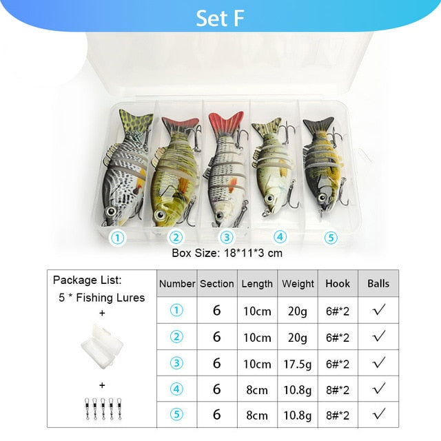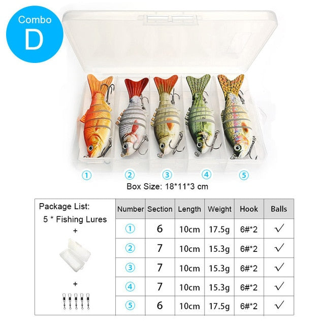 Lure Type: 6/8-segement multi-jointed artificial fishing baits with 2 treble hooks,S-swim motion at any speed