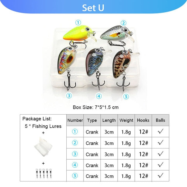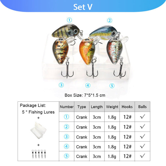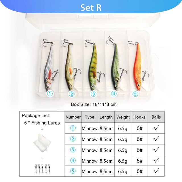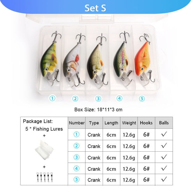 5pcs Fishing Lures Set Wobblers Crankbaits Fishing Box For Wobblers Swimbiat Artificial Bait Kit Hard Lure Fishing Tackle