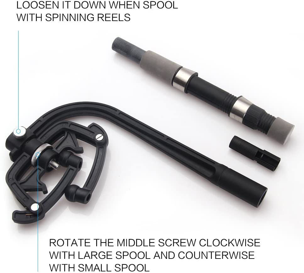 Great tool, especially for spinning reels and takes the twist out of adding line to spool as it spins with the bail.