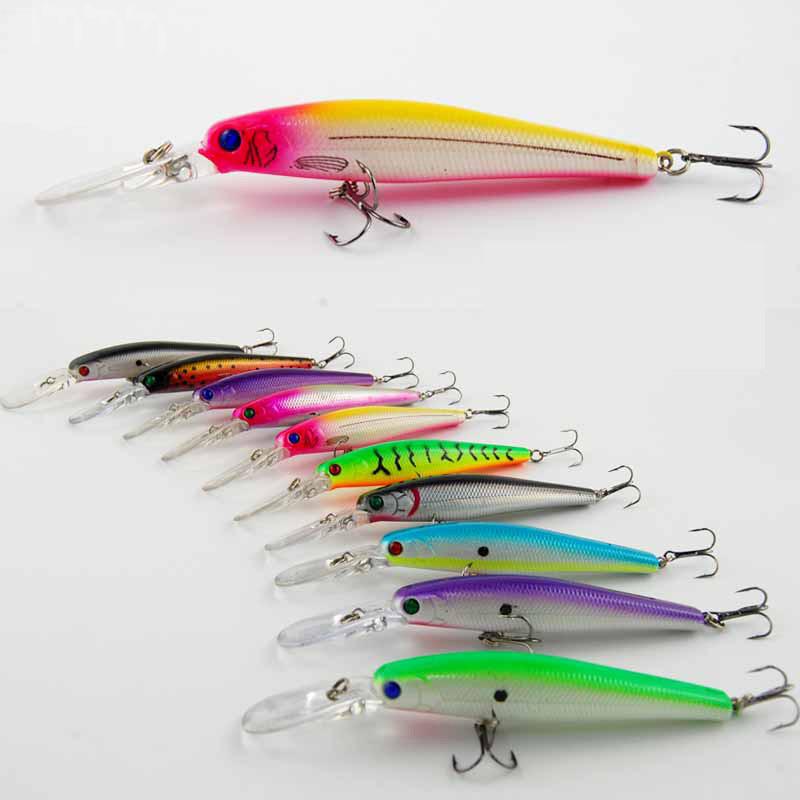 10pcs Plastic Hard Fishing Lures Saltwater Fishing Bass Deep Diver Minnow Floating Artificial Fishing Wobblers Lure Hooks