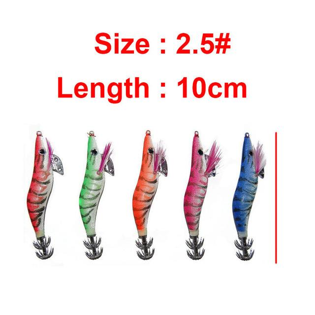 - Squid jig size: 2.5#/10cm/3.94", 3.0#/12cm/4.72", 3.5#/14cm/5.51" (pack of 5)