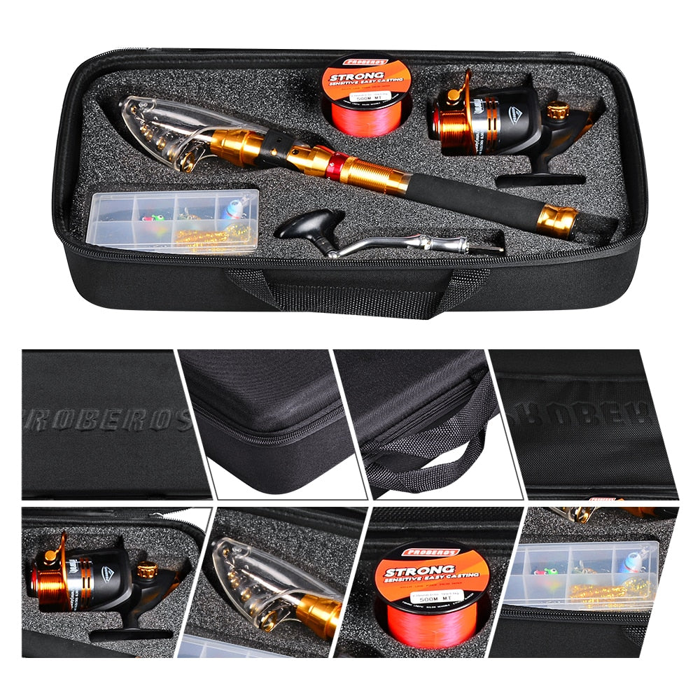 Complete Fishing Kit: 1 Telescopic Fishing Rod + 1 Spinning Fishing Reel + Fishing Bag Case + Some Fishing Accessories (fishing line, lures, hooks, barrel swivels).