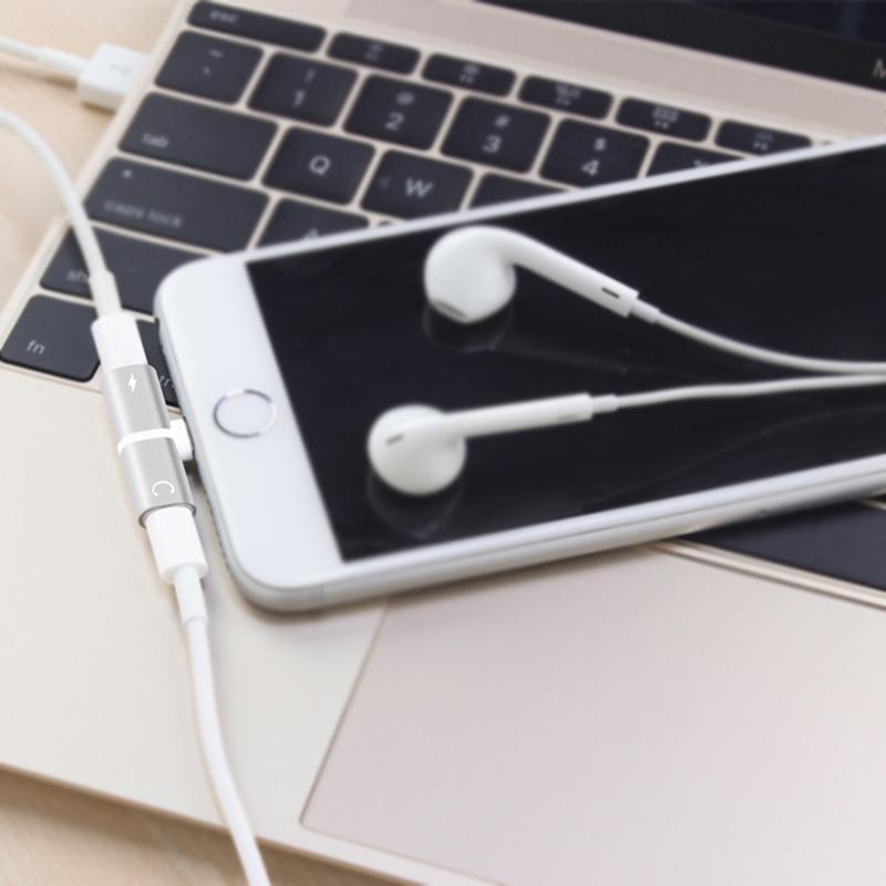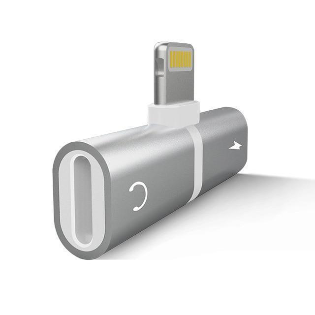 Our Double-Threat Adapter lets you listen to music and charge your phone at the same time. The tiny attachment fits into your phone jack and offers ports for both your headphones and your phone charger. Perfect for iPhone 7 and above!