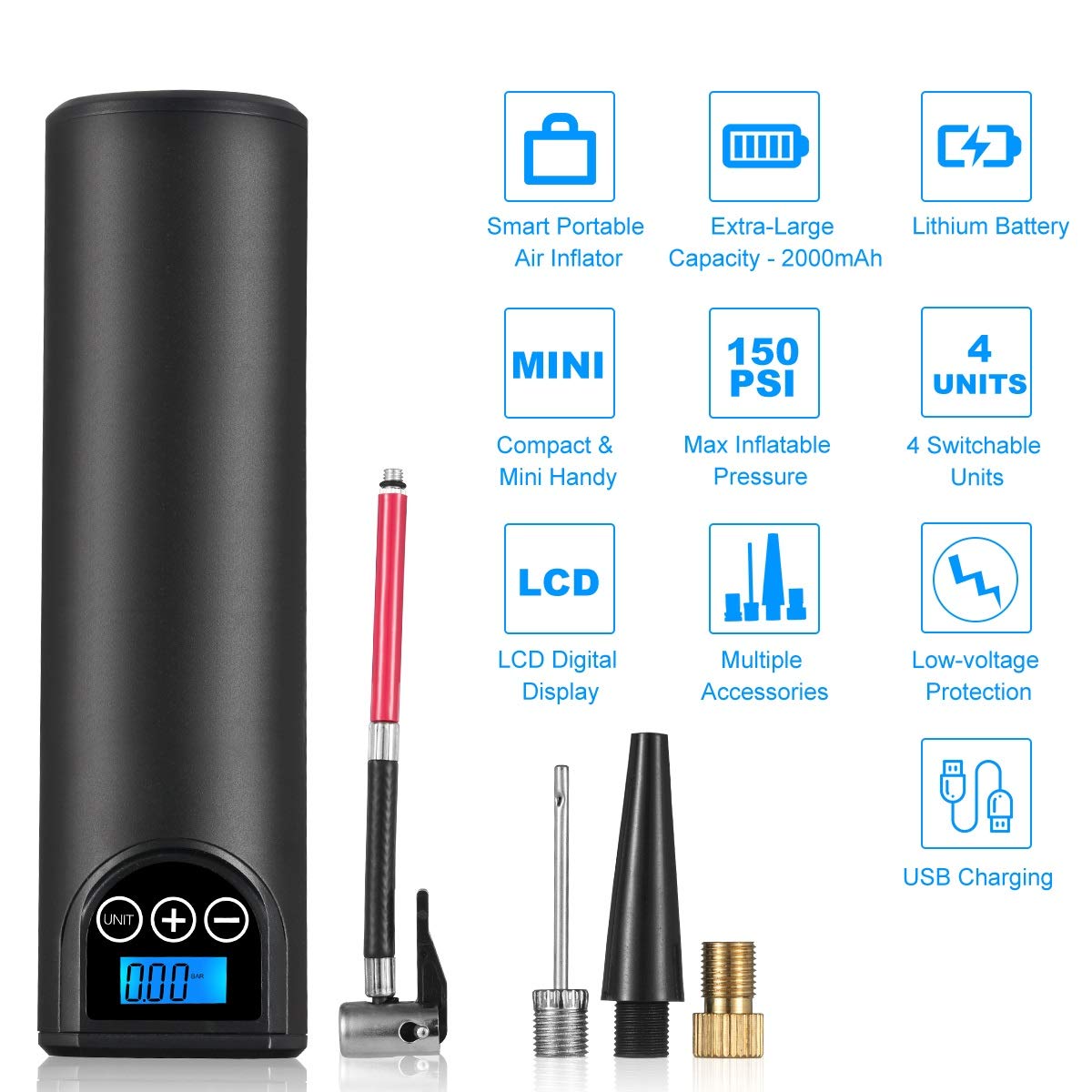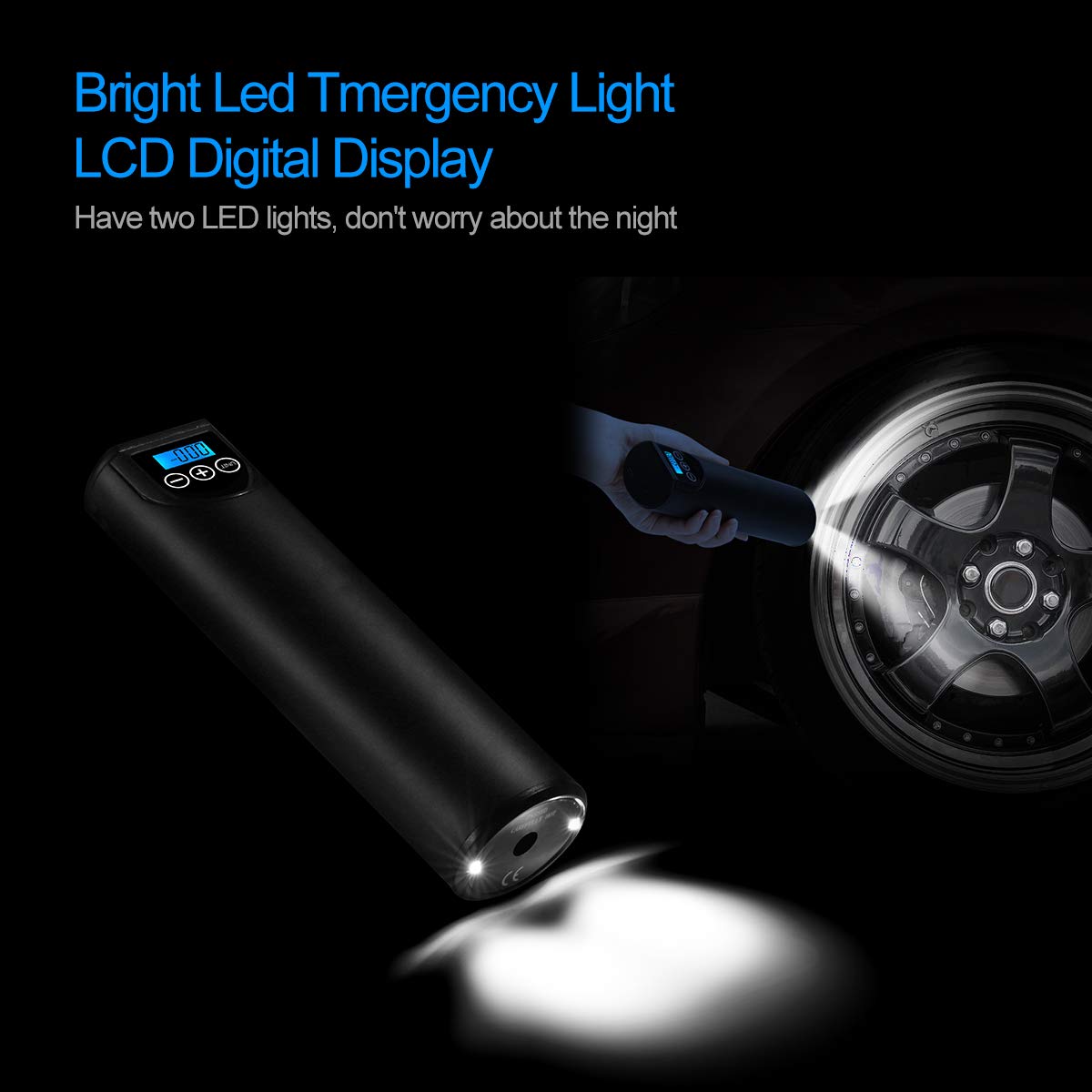 - Wireless Inflatable Pump, Self-contained battery--At full power, it can continuously inflate 4 tires and stand by for 365 days and 25 minutes.