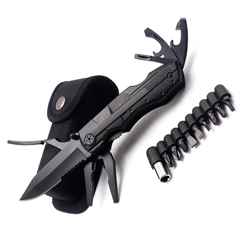The Multi-Tool Pocket Knife 10-in-1 is every DIY enthusiasts and hardware professional's dream. A lightweight, yet ultra-functional multitool that is best suited for all types of handicraft work including home repair, carpentry, and electronics, and a must-have for rigorous outdoor activities such as climbing, finishing, camping, and hiking.