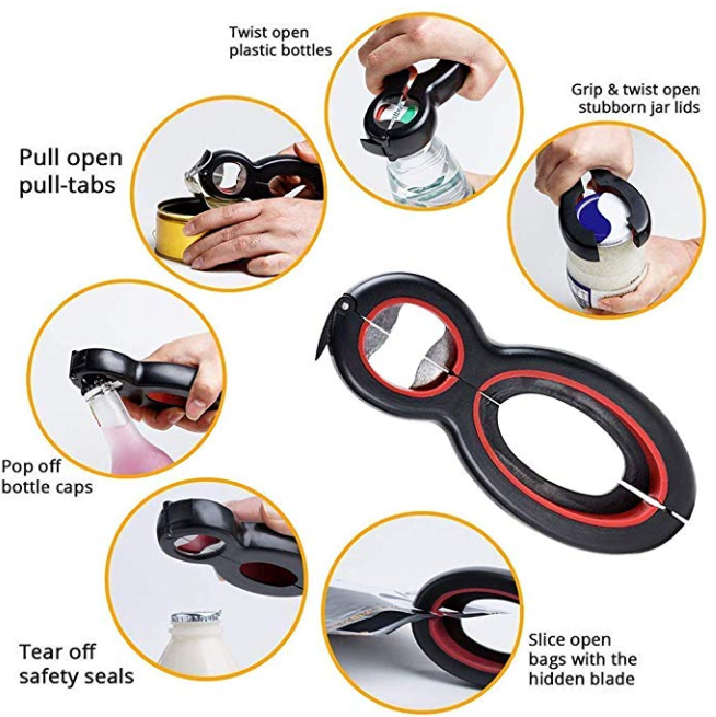 Never again to feel left hung and drooled by your favorite chips and sodas because you struggle to open it. With this multi-opener you don't need somebody's help even you're a senior with arthritic hands.