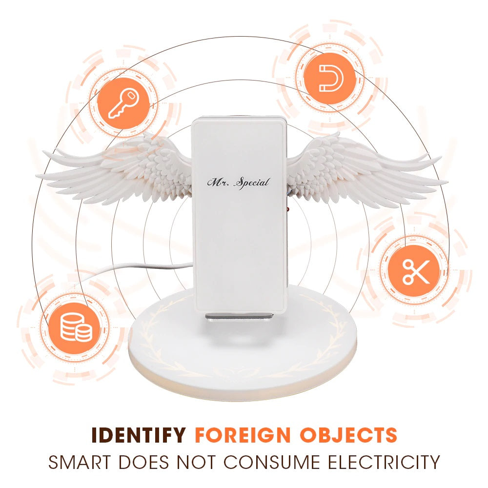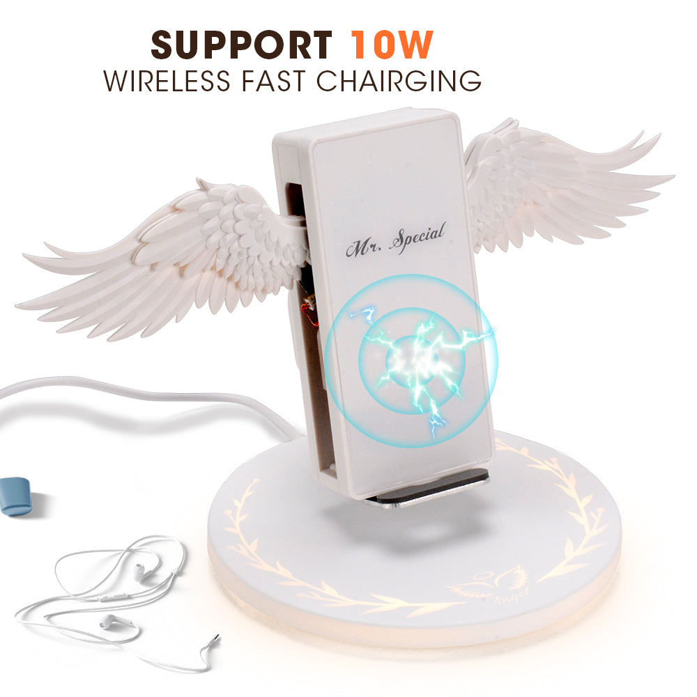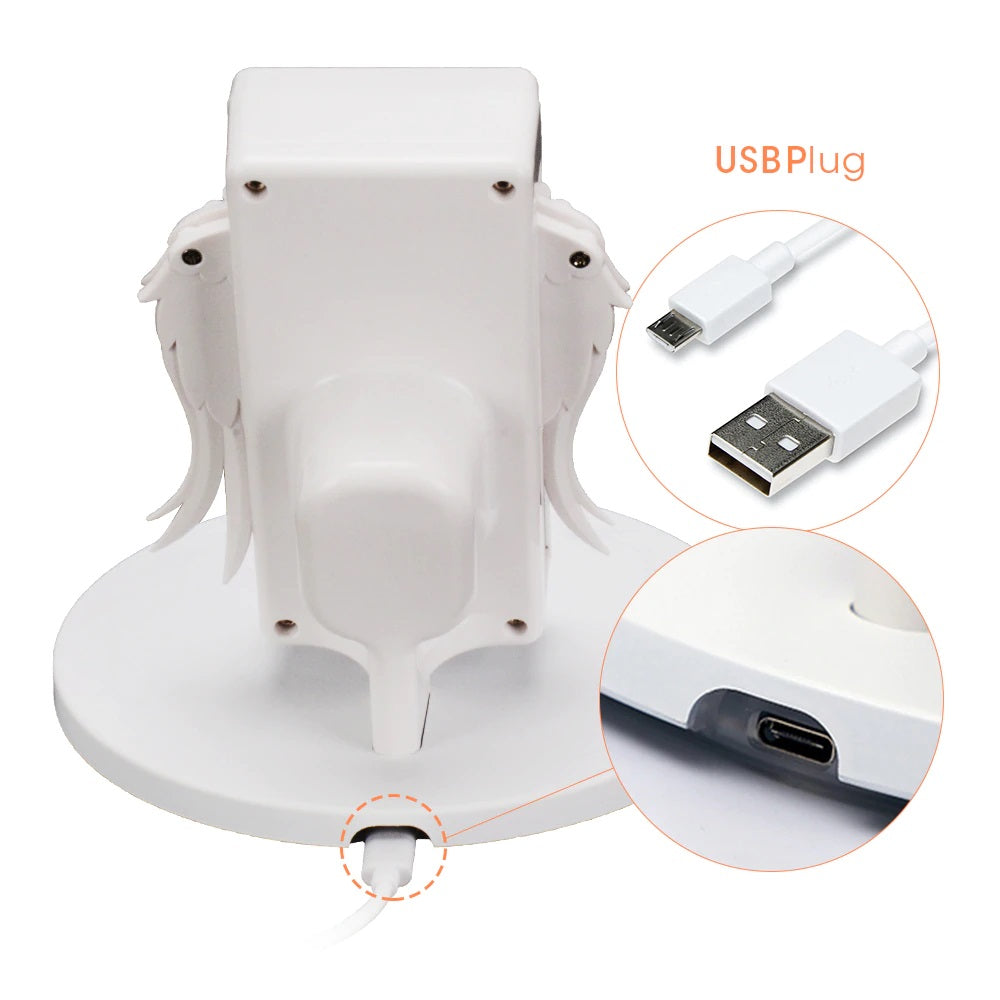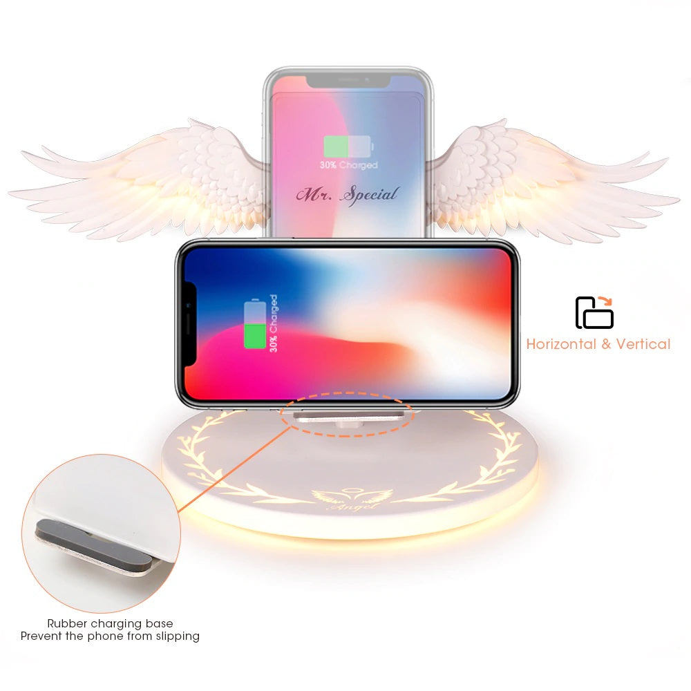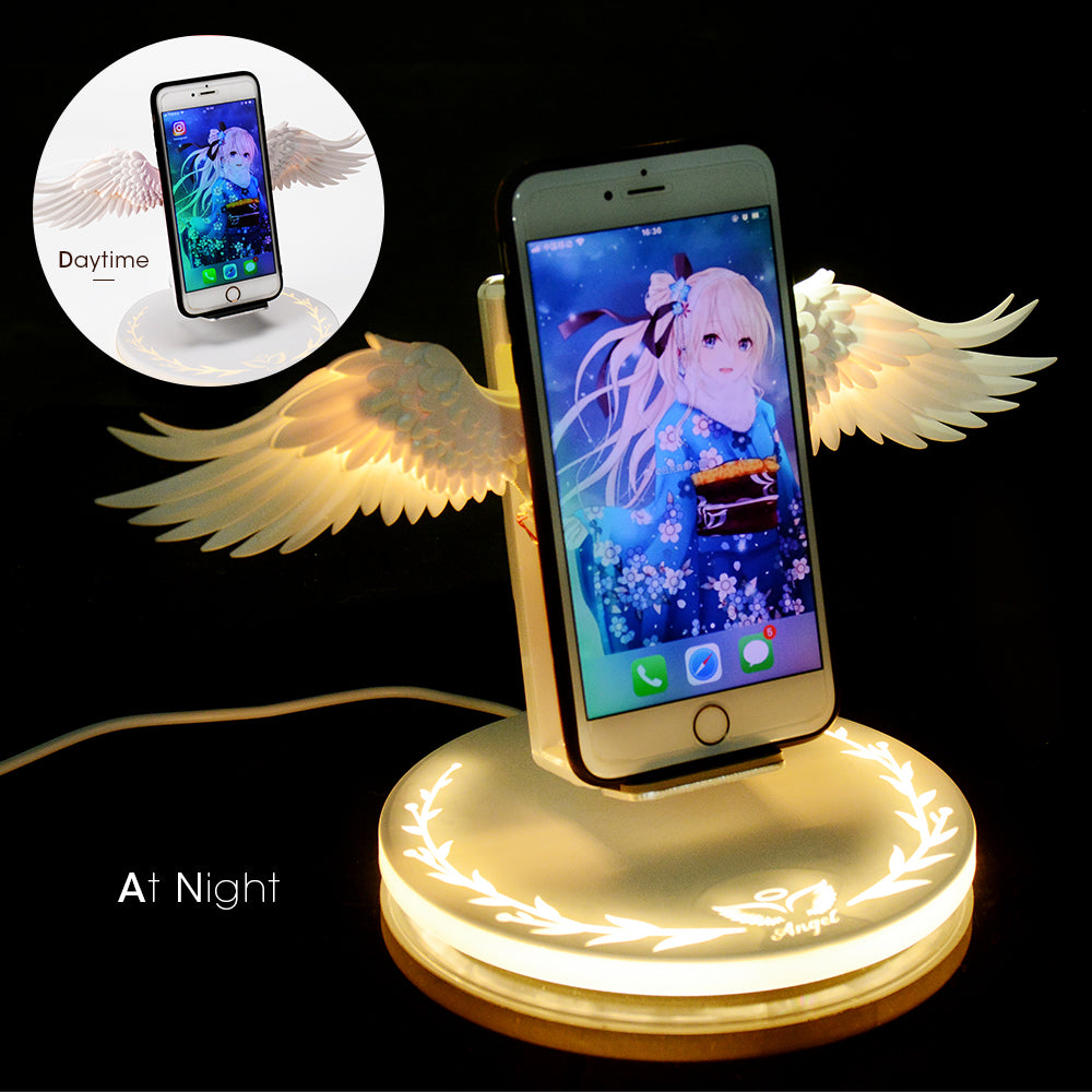 The Angel Wing Mystic Wireless Charger is an amazing way to charge your phone! As you place your phone down, the base symbols will begin to light up and the wings will start to rise! A charging experience like no other!