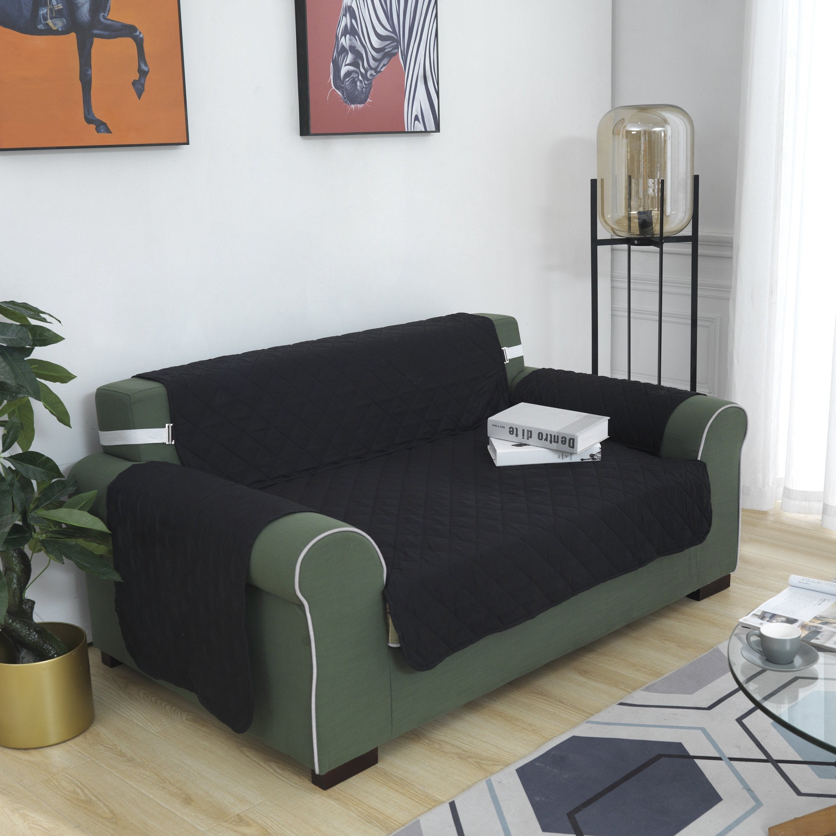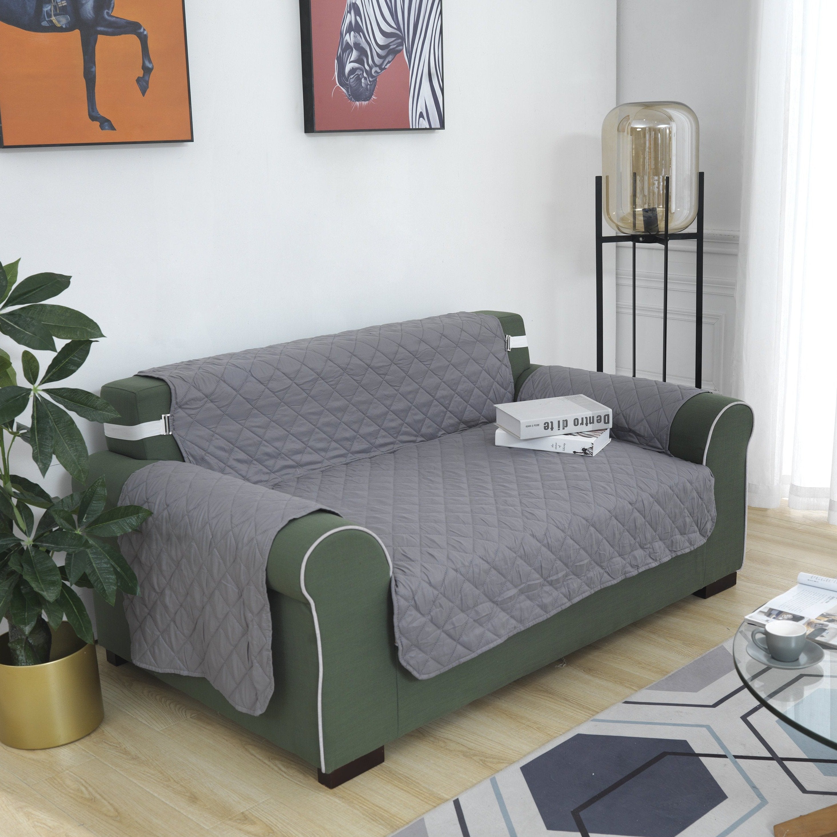 Purchased this cover to protect a very light white sofa when visitors come over and so glad that I did. It isn��t as attractive as my sofa but it does the job and protects it. It is reversible which is great and gives you another option. It doesn��t fit as tight as I would like but I also didn��t use the buckles as I didn��t want to ��dent�� my fabric. All in all, it is a very sturdy but very comfortable material with layers rhat make it water resistant