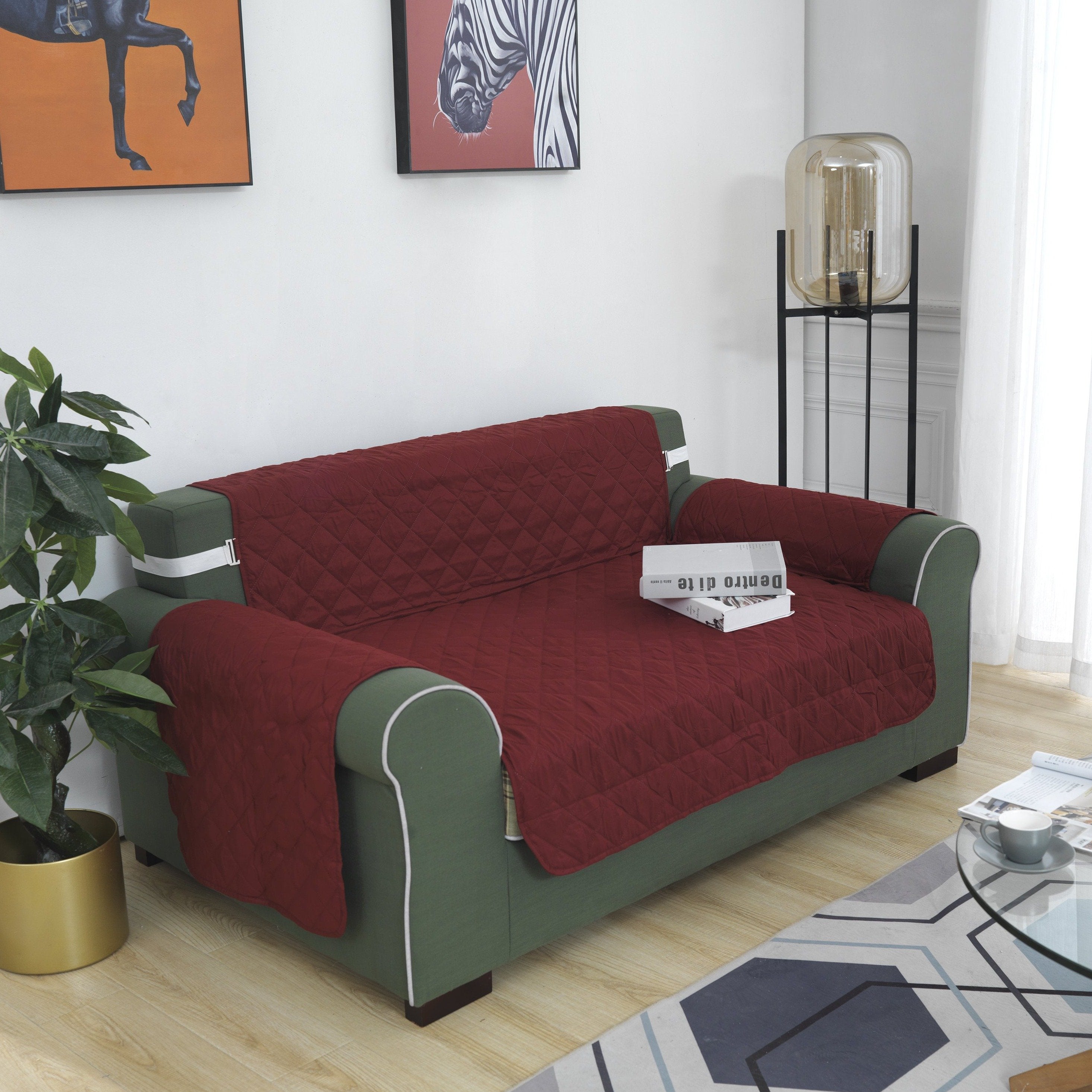 I always resisted buying slipcovers because, well, who wants to be the crazy relative who makes everyone sit on horrible plastic sofa covers? But my last loveseat was slowly shredded by my shelties, who like to jump up to look (read: bark manaically) out the front window. With our new furniture, I decided I needed to invest in something to protect the fabric from dog nails, and I'm so pleasantly surprised by how nice these are. The 2 seater size fit my loveseat almost perfectly, and the color coordinated great with the throw pillows. So far the cover has stayed in place without needing the strap. I liked it so much that I immediately ordered a second one for the family room sofa (the dogs' other favorite piece of furniture).