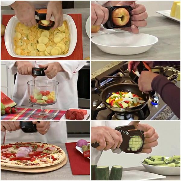 - Combines five interchangeable slicing options into one handheld slicer, the quick-lock function for safe, compact storage.