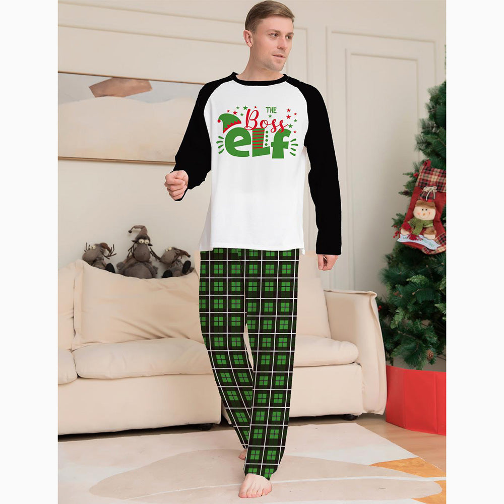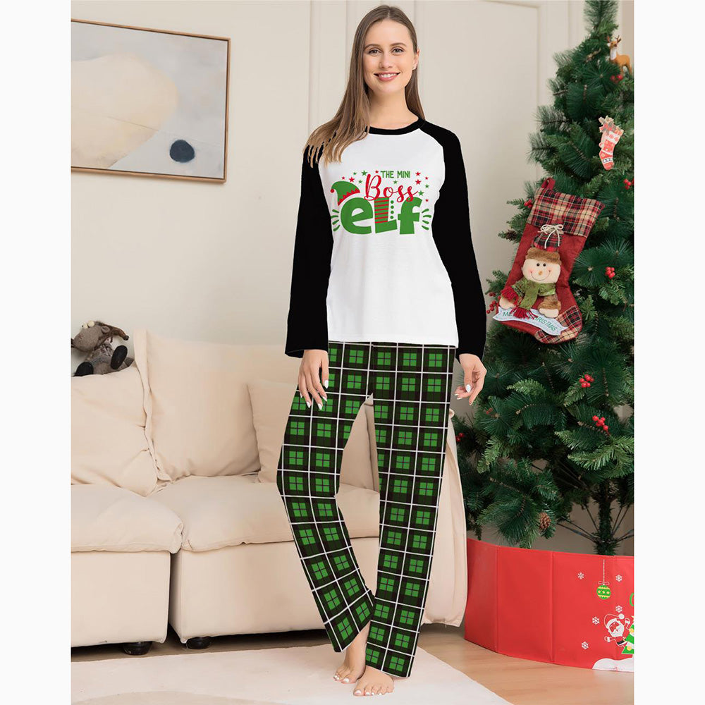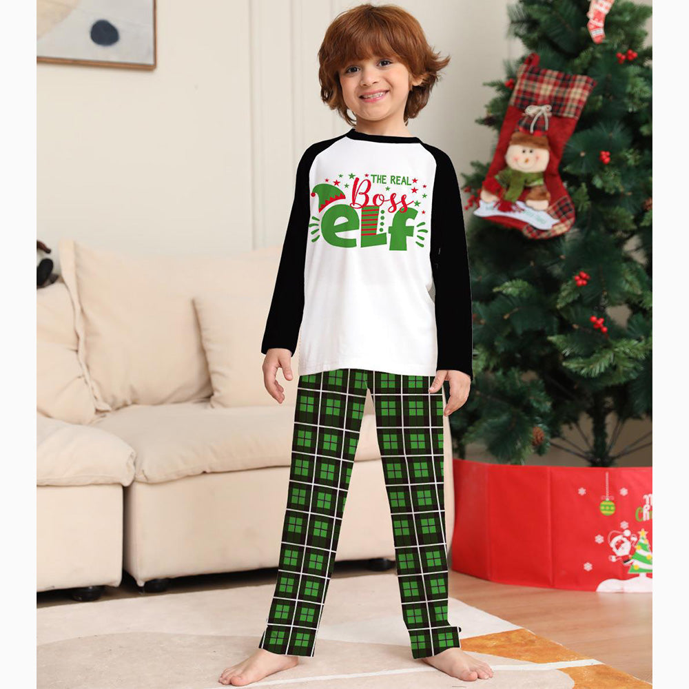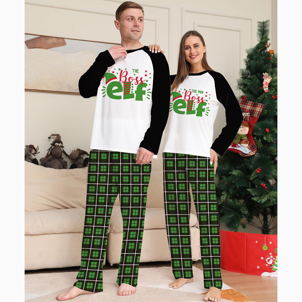 Christmas Letter Green Plaid Family Matching Pajamas Sets