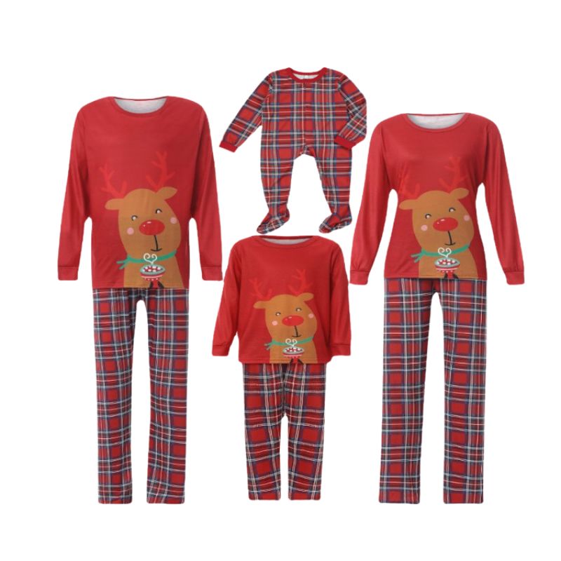 Family Matching Cartoon Deer Plaid Print Family Look Pajama Set