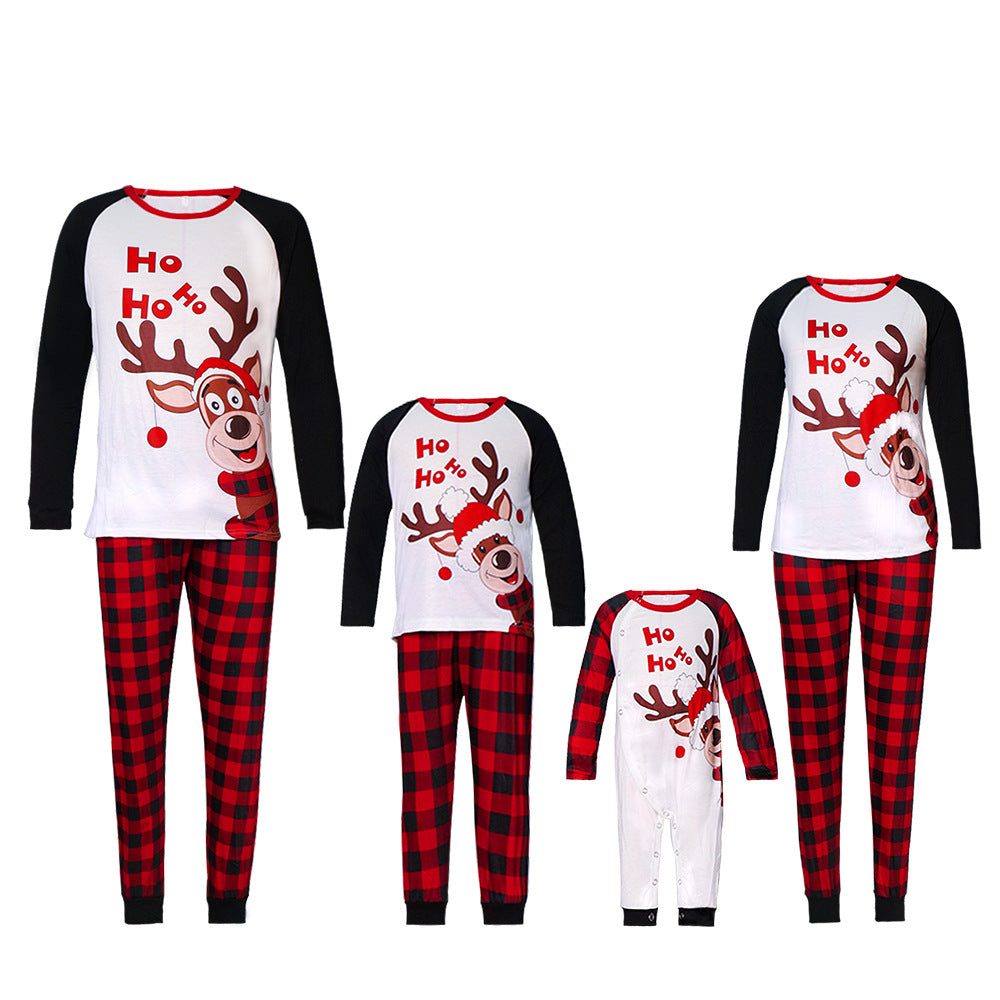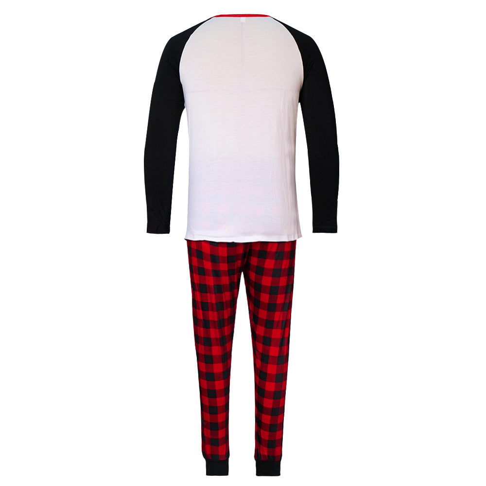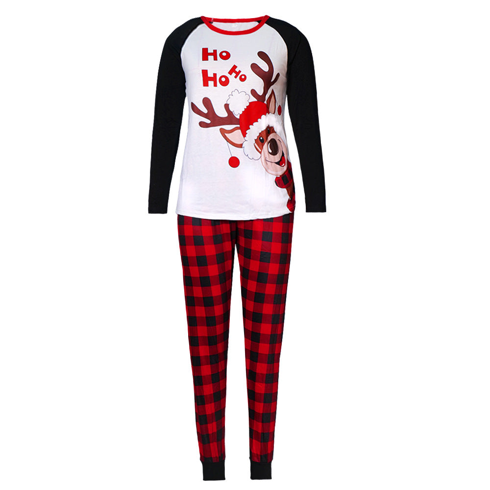 Reindeer Letter Print Ragaln-sleeve Red Plaid Pajamas Sets