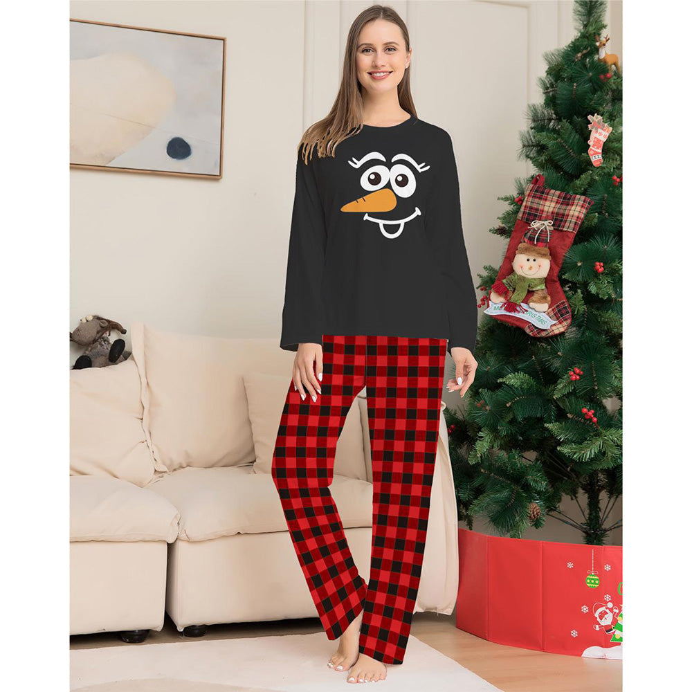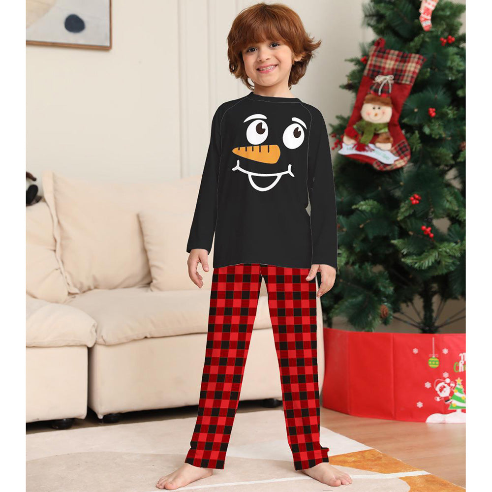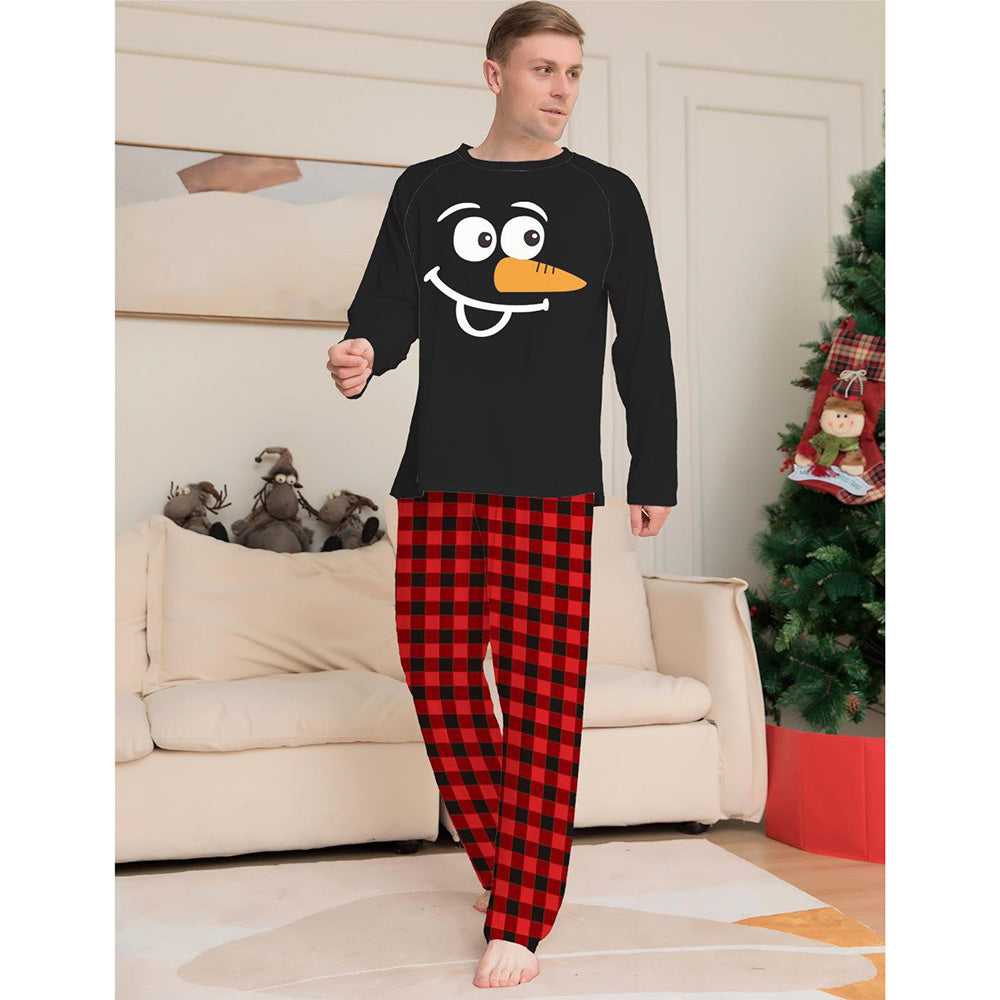 Snowman Plaid Print Round Neck Long Sleeve Christmas Family Pajamas