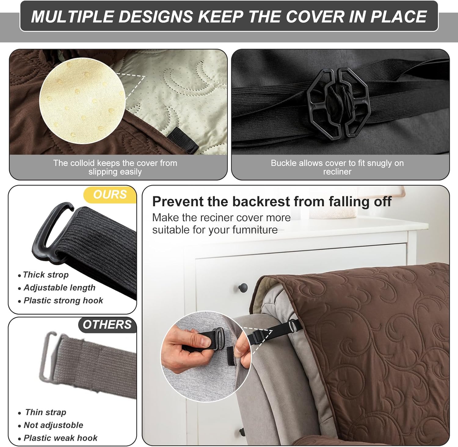 There are anti-slip rubber particles on the back of the recliner cover, which increases friction and is not easy to fall off.
