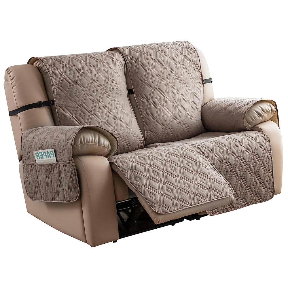 Attach the adjustable elastic straps to the back of each recliner, then adjust the length of the elastic straps to fit snugly against the back of the recliner to prevent slipping.