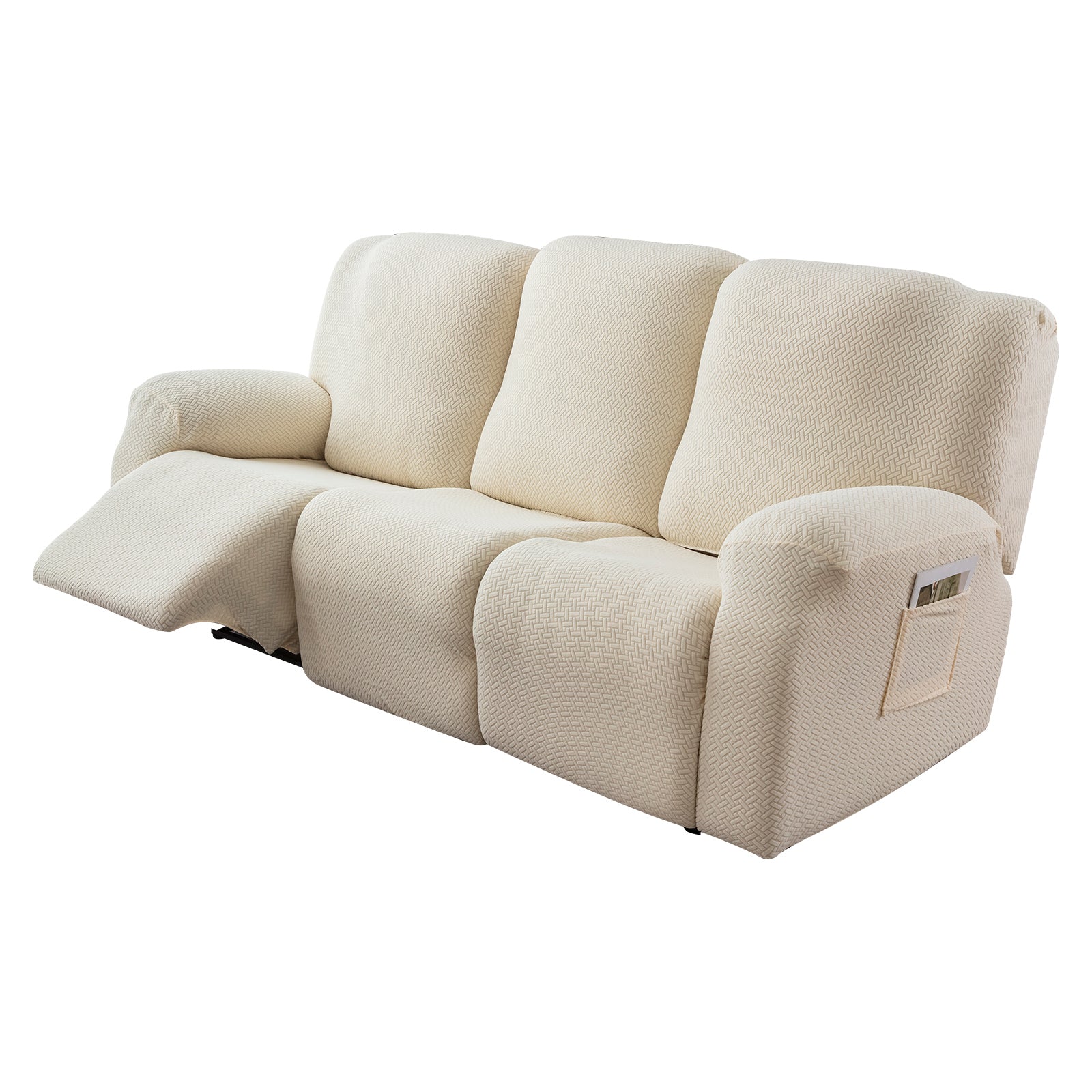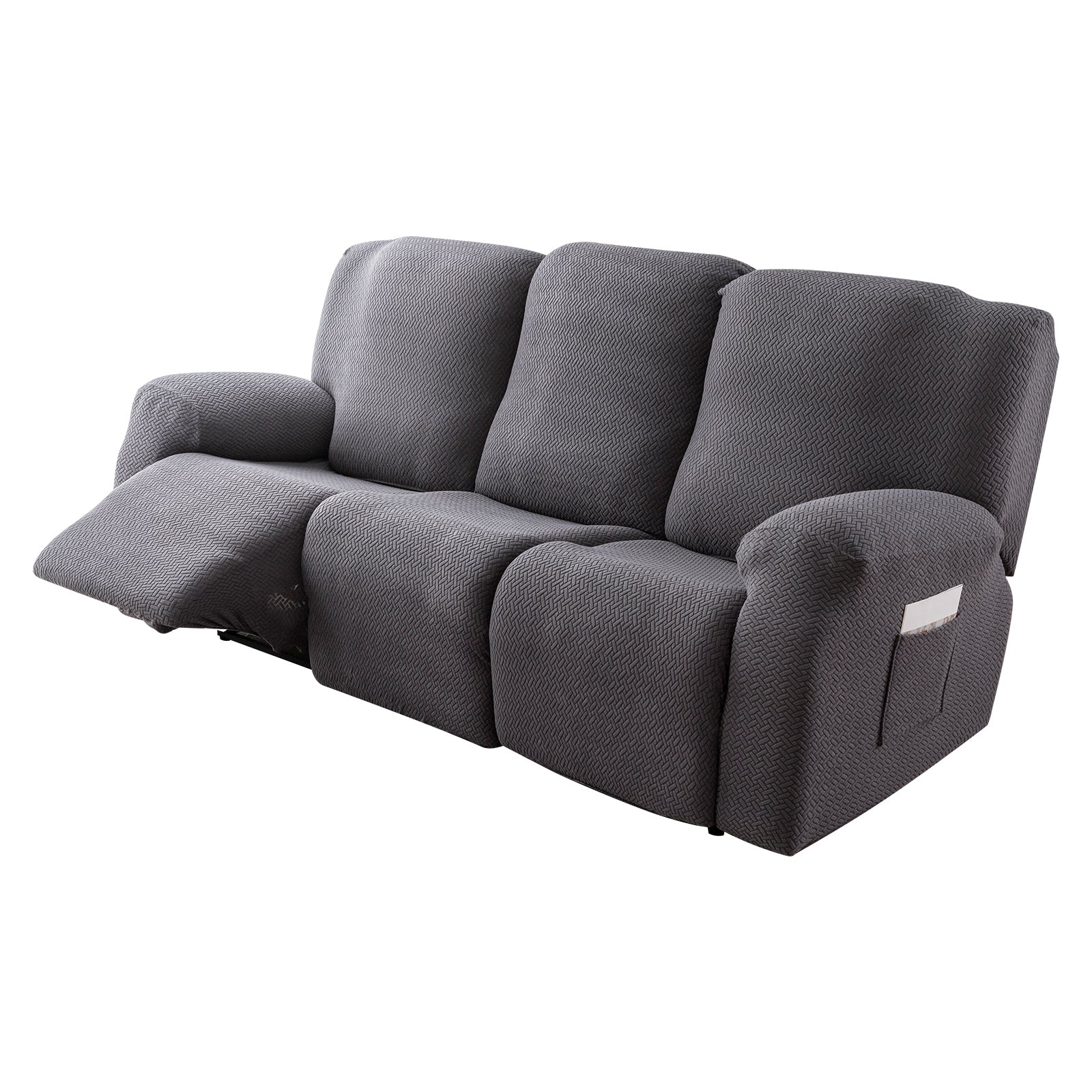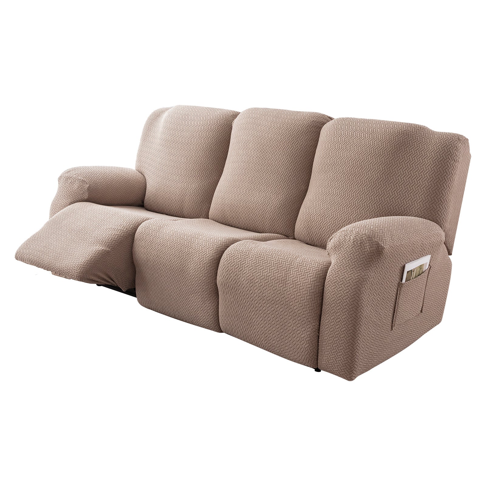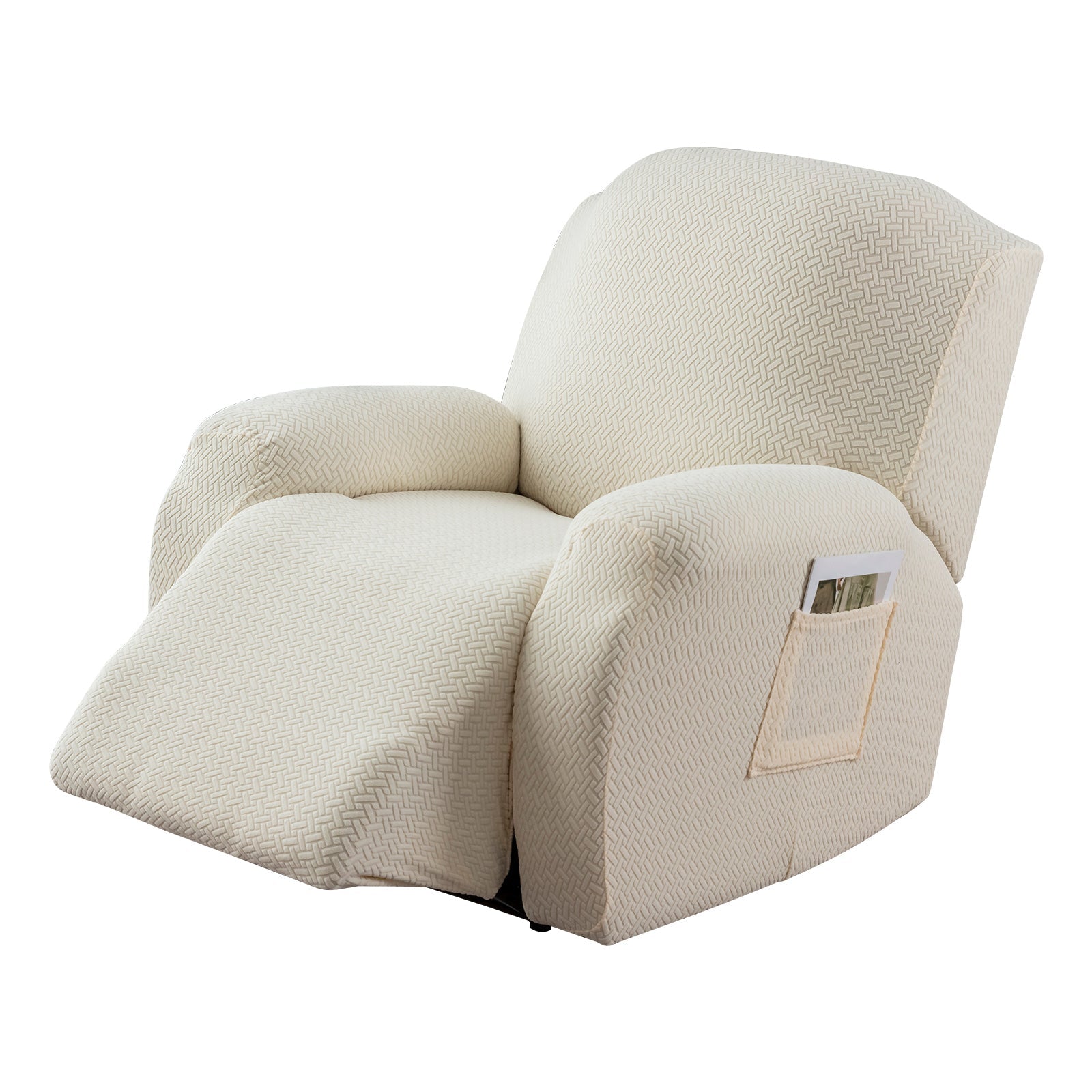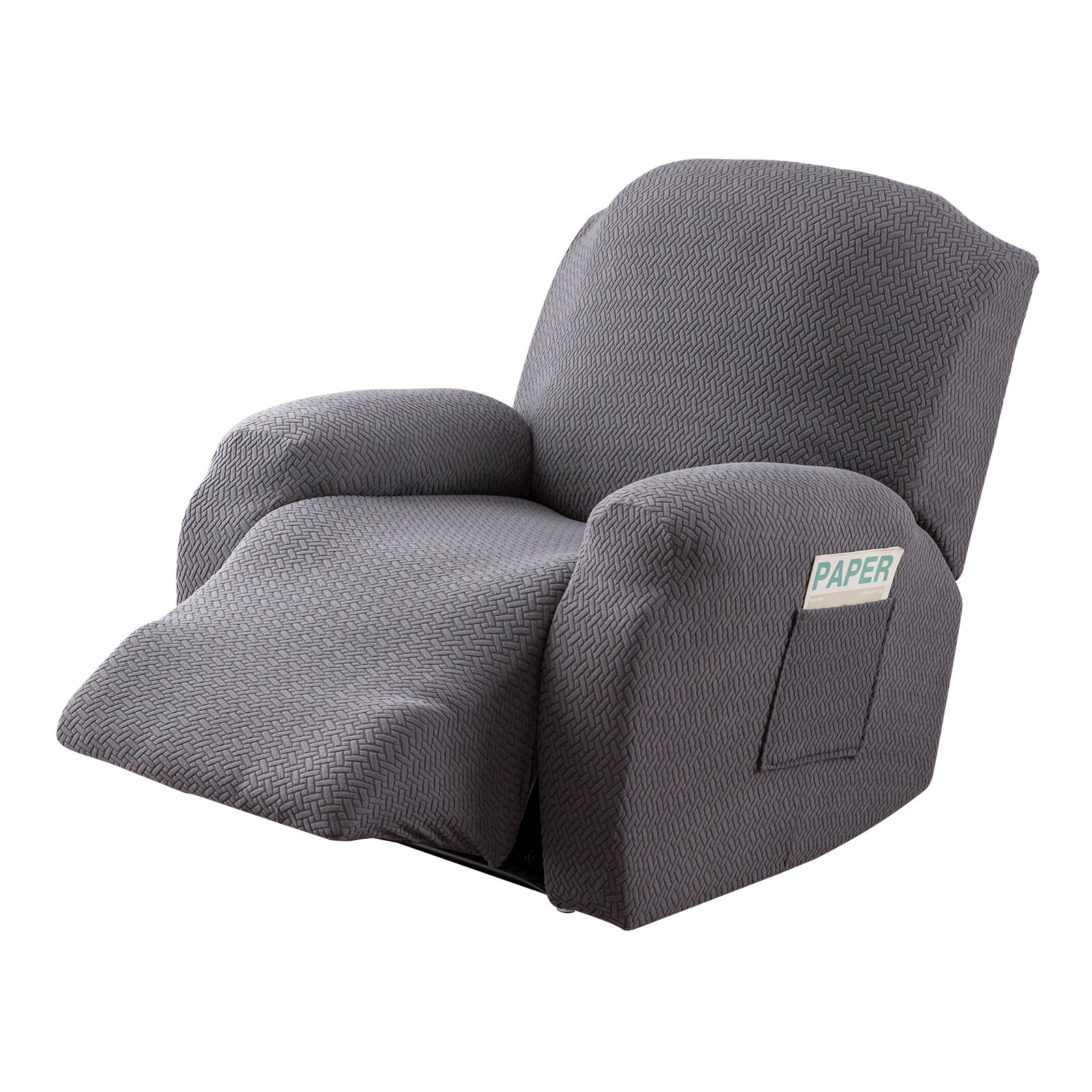 The recliner cover has a storage bag design on the arm, which can be used to store magazines, remote controls and other items.