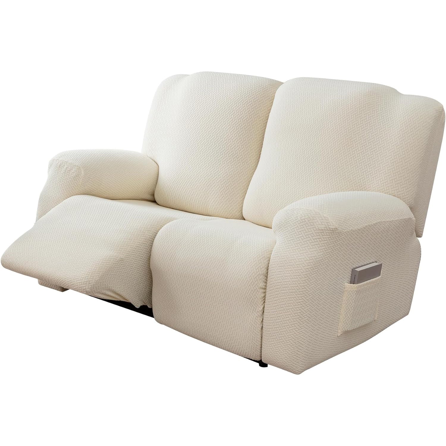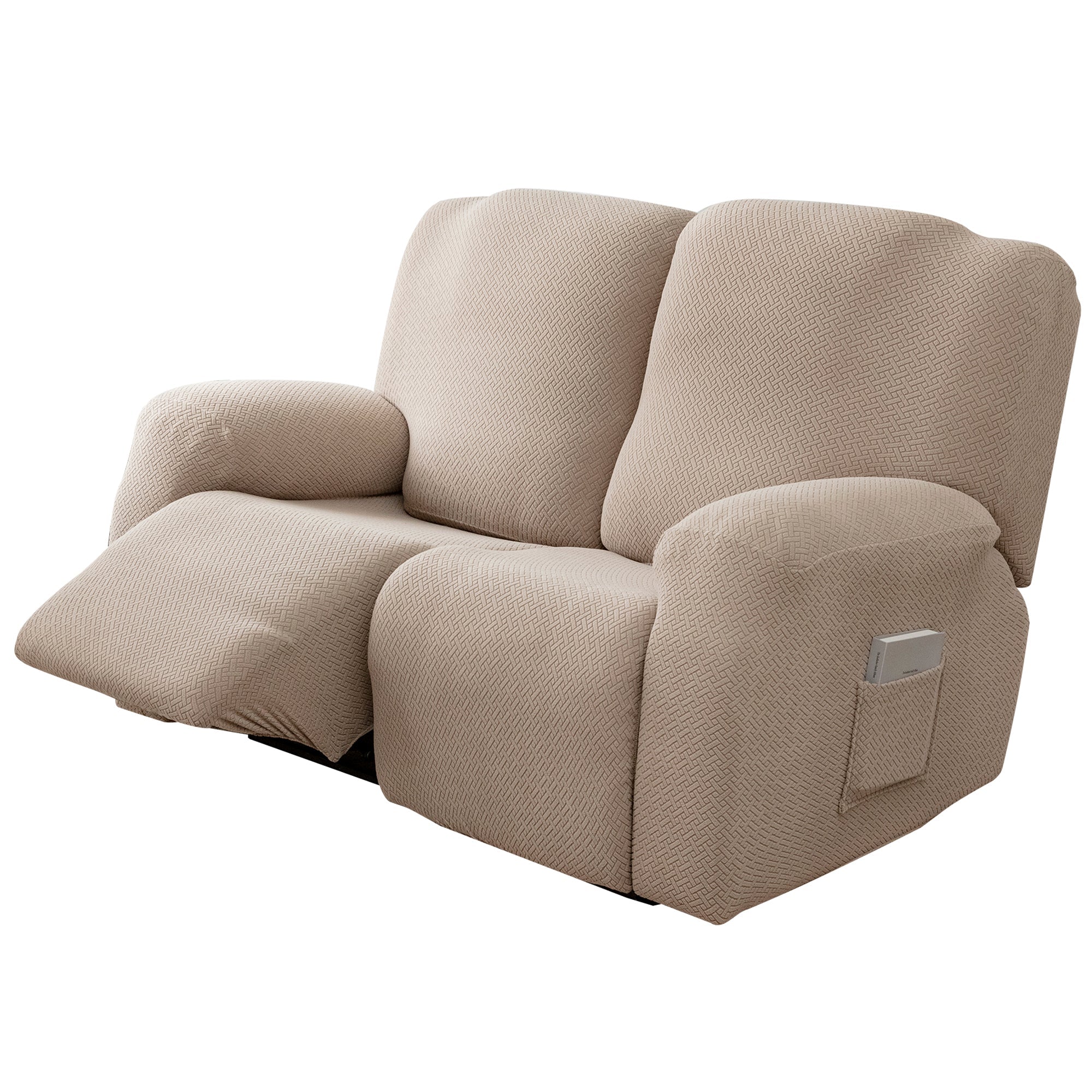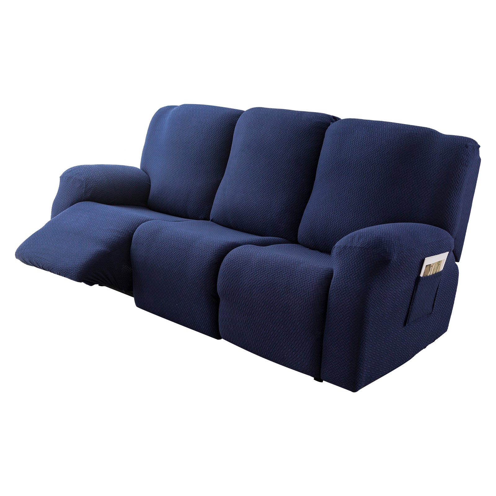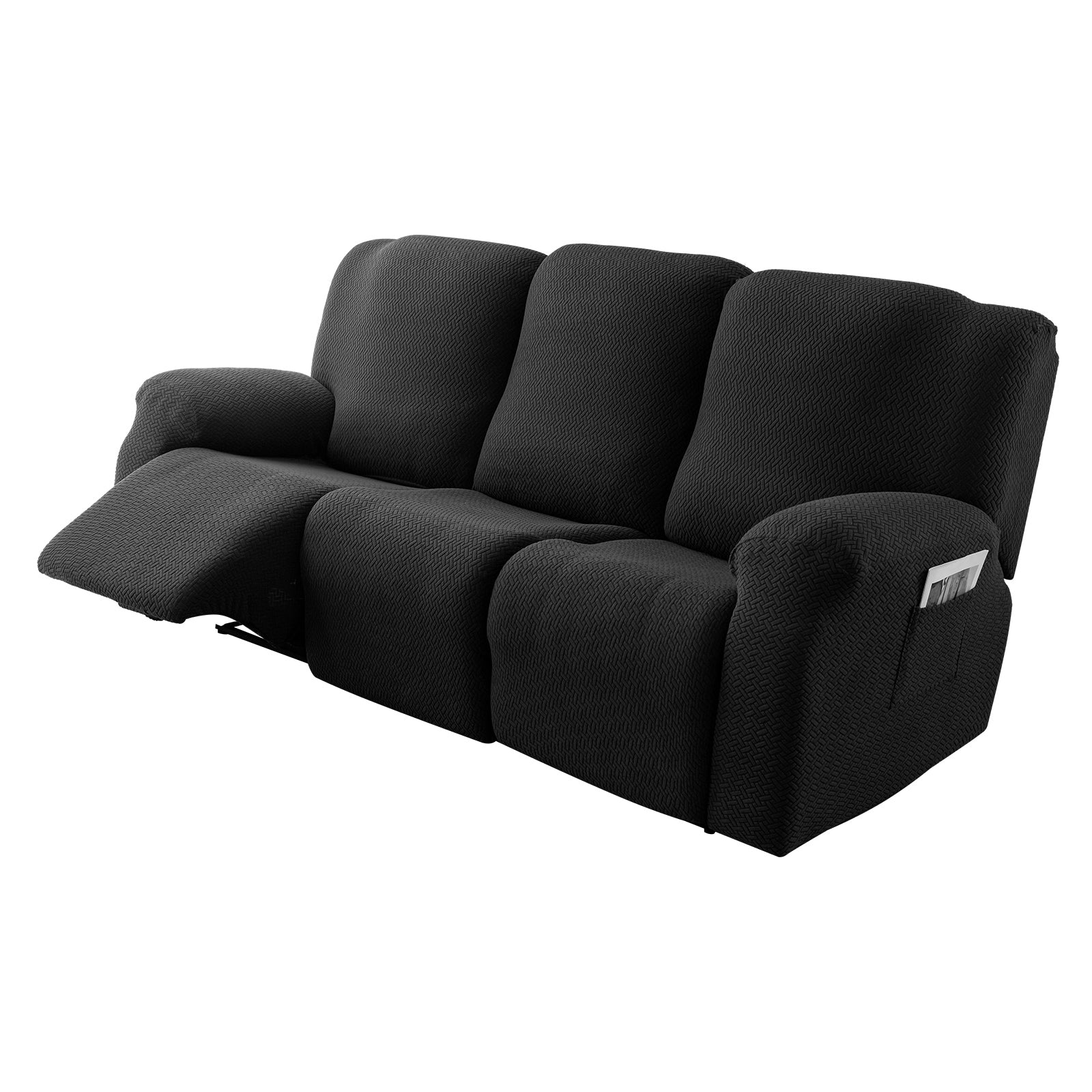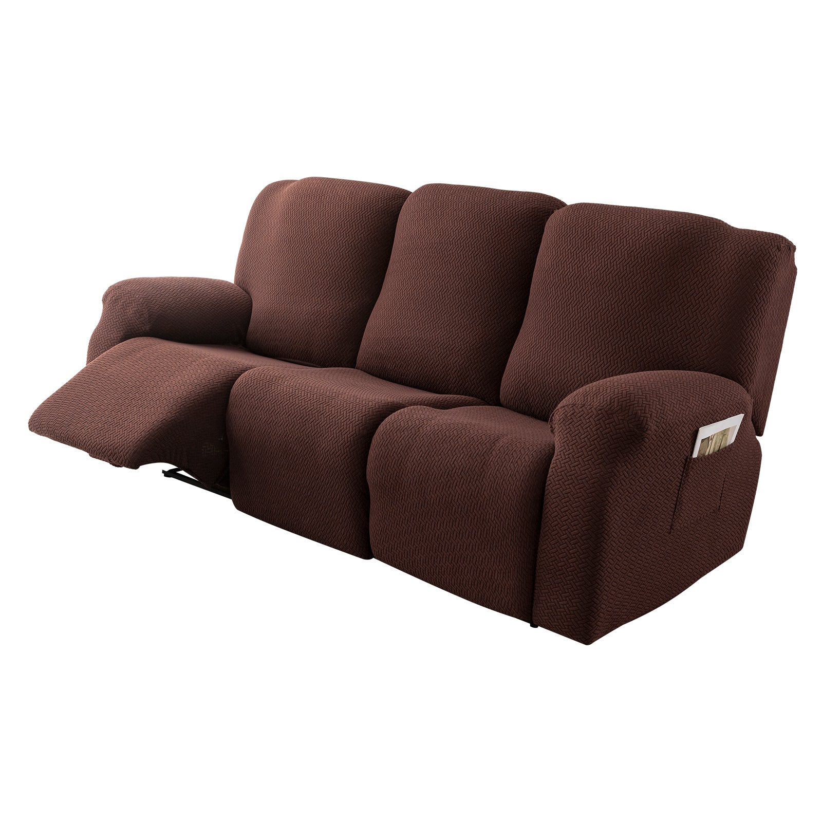 The recliner cover has a storage bag design on the arm, which can be used to store magazines, remote controls and other items.