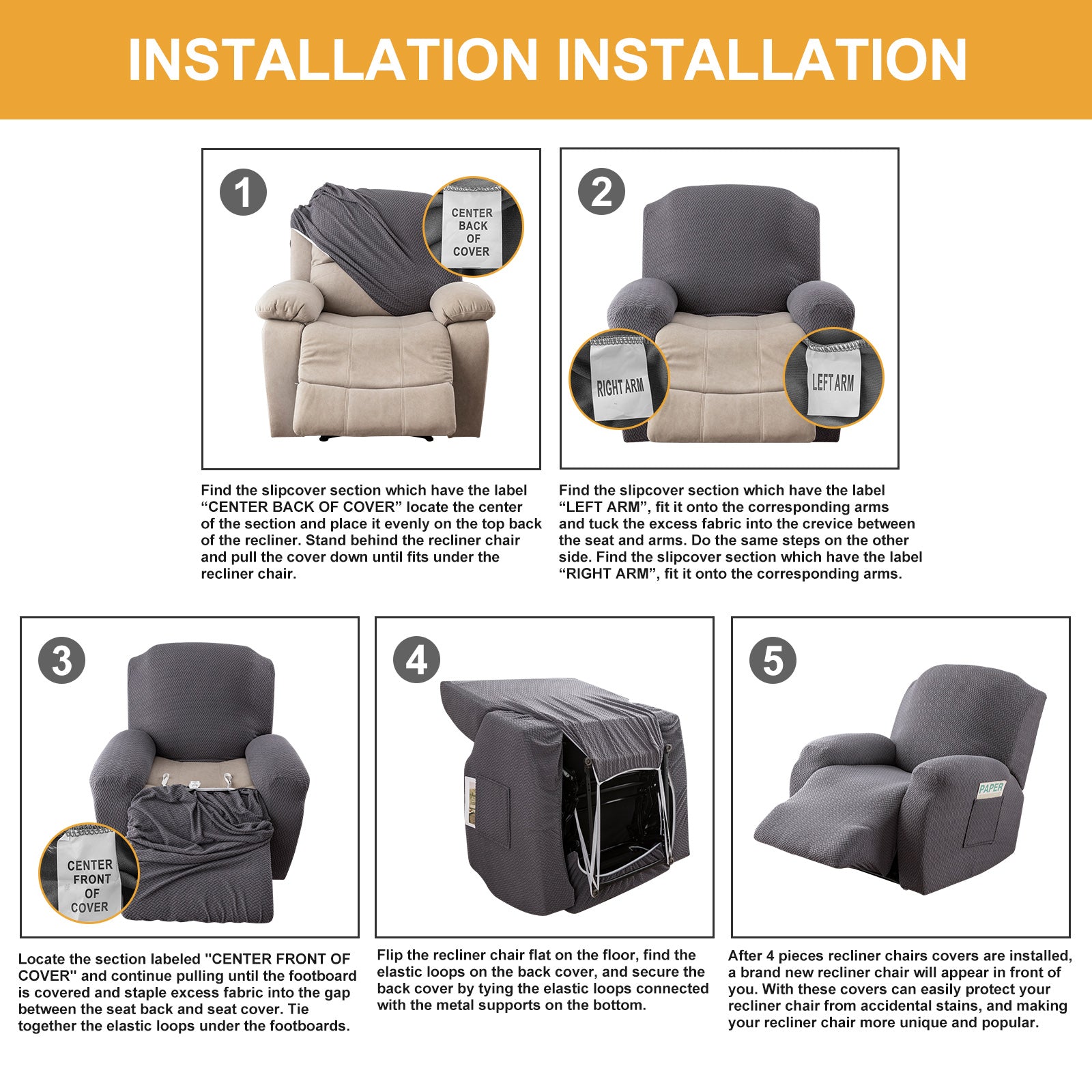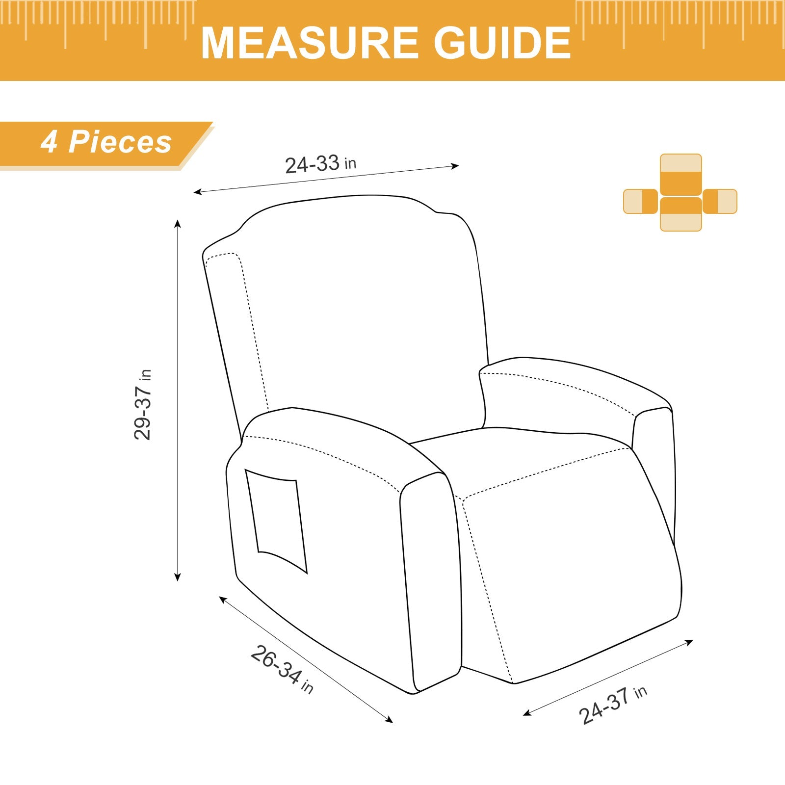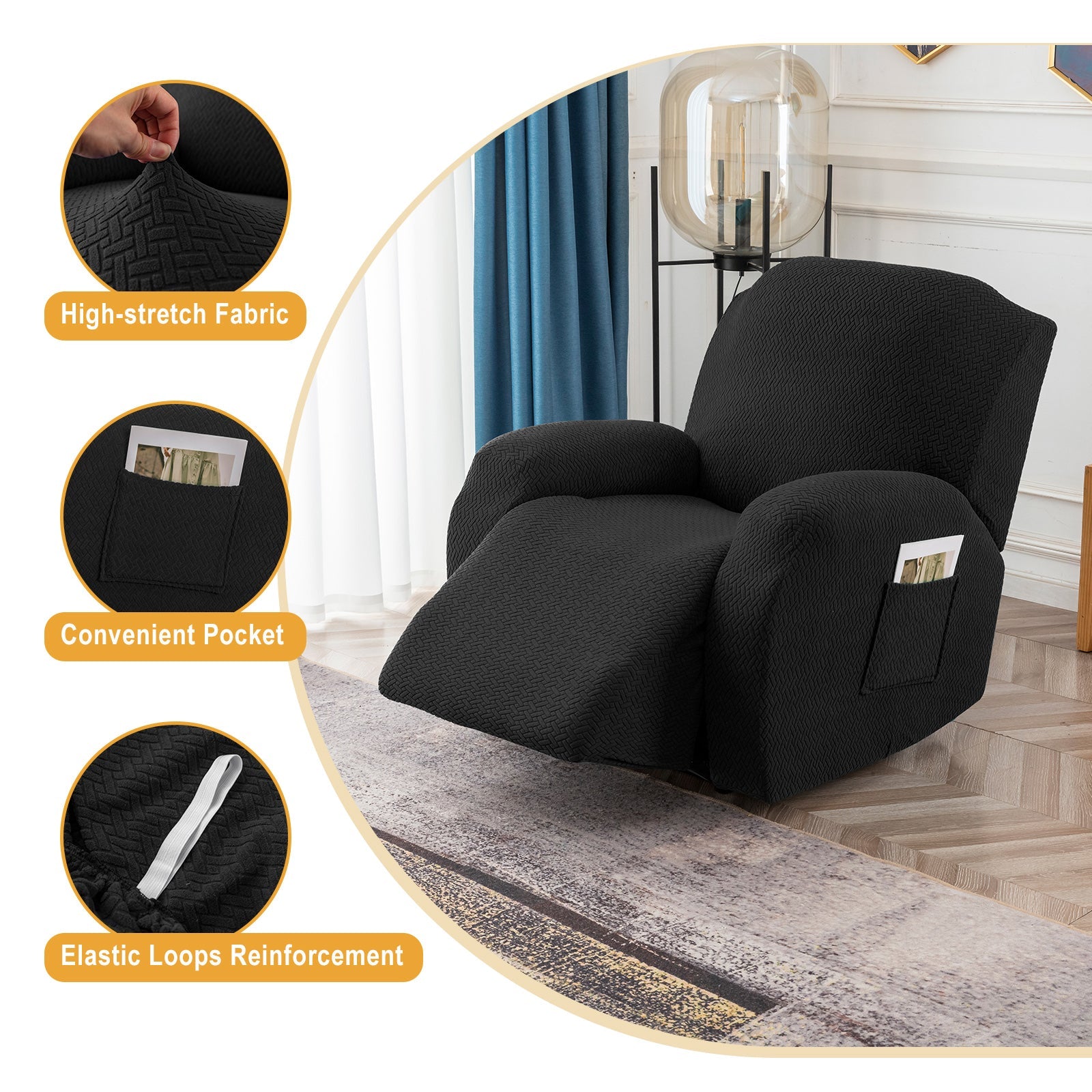 The recliner chair cover is made of durable and high-durable jacquard knit fabric that is soft and comfortable. Protect your chairs from stains, spills, scuffs and scratches.